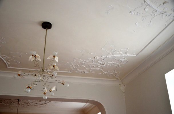 DETAIL STROPNÍ ROZETY S FLORÁLNÍM OKRUŽÍM ZE STROPNÍ SESTAVY DITA